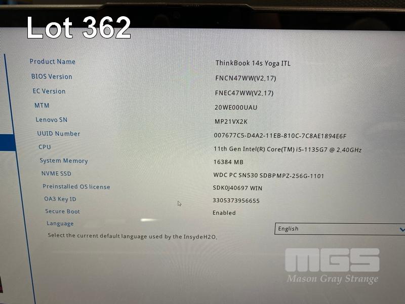LAPTOP, LENOVO THINKBOOK 14s YOGA ITL, TYPE 20WE, CORE i5 1135G7 (11TH GEN) @ 2.4GHz, 16GB DDR4 RAM, 256GB NVMe M.2 SSD, 14" TOUCHSCREEN (1920x1080), INTEL IRIS Xe GRAPHICS, Wi-Fi, BLUETOOTH, WINDOWS 11 PRO INSTALLED & USB-C POWER SUPPLY S/N:MP21VX2K