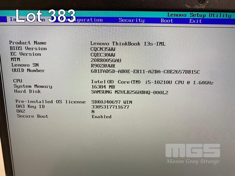 LAPTOP, LENOVO THINKBOOK 13s-IML, TYPE 20RR, CORE i5 10210U (10TH GEN) @ 1.6GHz, 16GB DDR4 RAM, 256GB NVMe M.2 SSD, 13.3" WIDESCREEN (1920x1080), INTEL UHD GRAPHICS, Wi-Fi, BLUETOOTH, WINDOWS 11 PRO INSTALLED & POWER SUPPLY S/N:R90ZRVWR