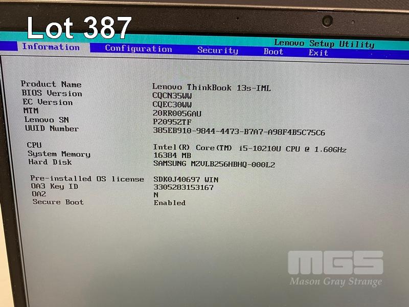 LAPTOP, LENOVO THINKBOOK 13s-IML, TYPE 20RR, CORE i5 10210U (10TH GEN) @ 1.6GHz, 16GB DDR4 RAM, 256GB NVMe M.2 SSD, 13.3" WIDESCREEN (1920x1080), INTEL UHD GRAPHICS, Wi-Fi, BLUETOOTH, WINDOWS 11 PRO INSTALLED & POWER SUPPLY S/N:P2095ZTF