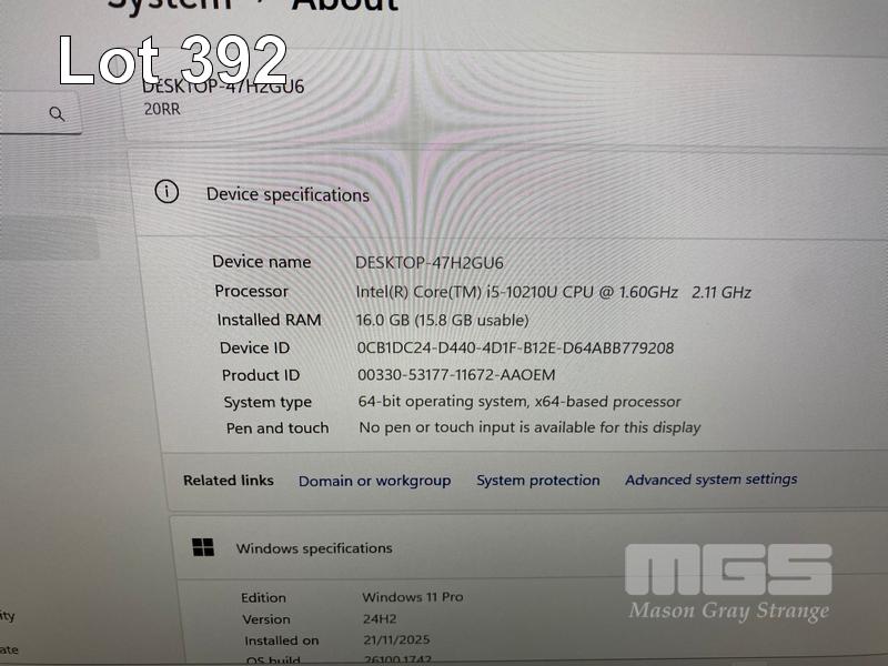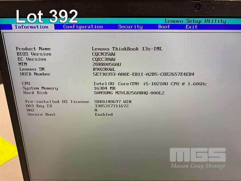 LAPTOP, LENOVO THINKBOOK 13s-IML, TYPE 20RR, CORE i5 10210U (10TH GEN) @ 1.6GHz, 16GB DDR4 RAM, 256GB NVMe M.2 SSD, 13.3" WIDESCREEN (1920x1080), INTEL UHD GRAPHICS, Wi-Fi, BLUETOOTH, WINDOWS 11 PRO INSTALLED & POWER SUPPLY S/N:R90ZRVWL