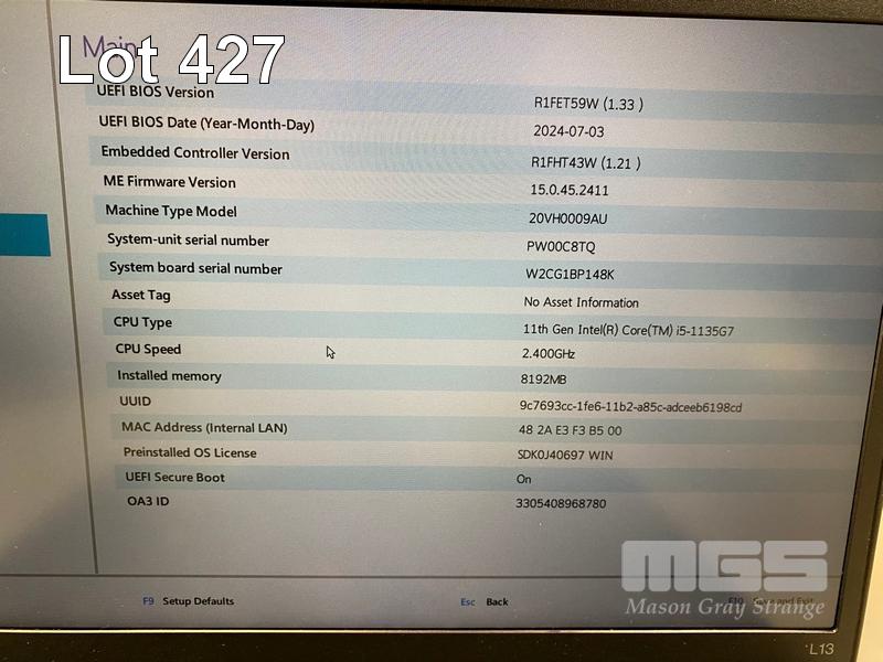 LAPTOP, LENOVO THINKPAD L13 Gen2, TYPE 20VH, CORE i5 1135G7 (11TH GEN) @ 2.4GHz, 8GB DDR4 RAM, 256GB NVMe M.2 SSD, 13.3" WIDESCREEN (1920x1080), INTEL IRIS Xe GRAPHICS, Wi-Fi, BLUETOOTH, WINDOWS 11 PRO INSTALLED (NO USB-C POWER SUPPLY) (NOTE: DAMAGE TO CASING) S/N:PW00C8TQ