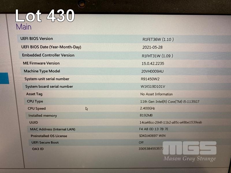 LAPTOP, LENOVO THINKPAD L13 Gen2, TYPE 20VH, CORE i5 1135G7 (11TH GEN) @ 2.4GHz, 8GB DDR4 RAM, 256GB NVMe M.2 SSD, 13.3" WIDESCREEN (1920x1080), INTEL IRIS Xe GRAPHICS, Wi-Fi, BLUETOOTH, WINDOWS 11 PRO INSTALLED (NO USB-C POWER SUPPLY) (NOTE: CRACK LINE ON CASING, SPOT ON SCREEN) S/N:R91450W2