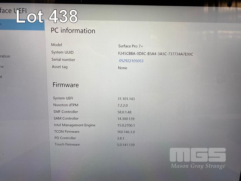 TABLET PC, MICROSOFT SURFACE PRO 7+, MODEL 1961, CORE i5 1135G7 (11TH GEN) @ 2.4GHz, 16GB DDR4 RAM, 256GB NVMe M.2 SSD, 12.3" TOUCHSCREEN (2736x1824), INTEL IRIS Xe GRAPHICS, Wi-Fi, CELLULAR, BLUETOOTH, WINDOWS 11 PRO INSTALLED, KEYBOARD TYPE COVER, CASE, POWER SUPPLY & CARRY BAG S/N:052922105053