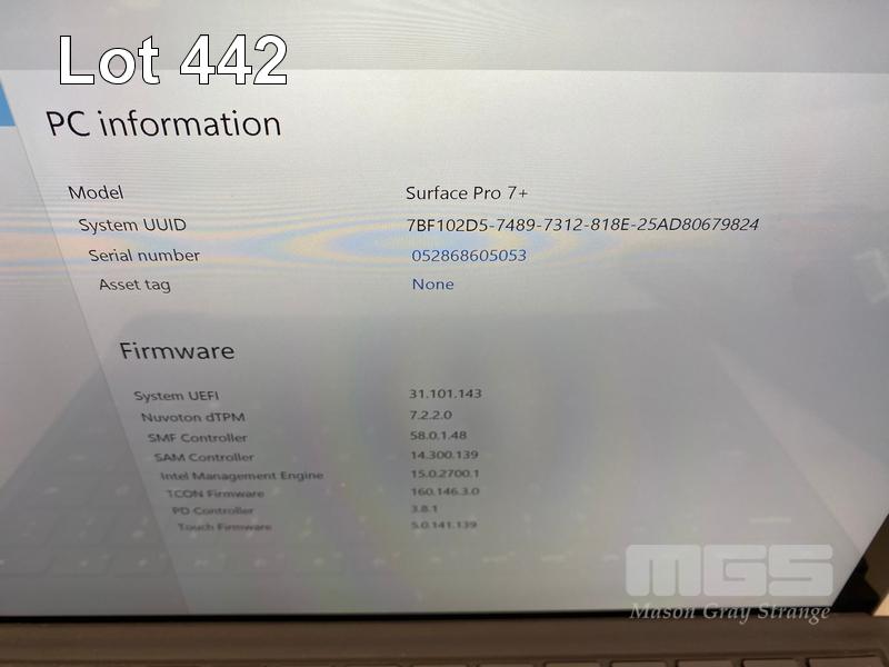 TABLET PC, MICROSOFT SURFACE PRO 7+, MODEL 1961, CORE i5 1135G7 (11TH GEN) @ 2.4GHz, 16GB DDR4 RAM, 256GB NVMe M.2 SSD, 12.3" TOUCHSCREEN (2736x1824), INTEL IRIS Xe GRAPHICS, Wi-Fi, CELLULAR, BLUETOOTH, WINDOWS 11 PRO INSTALLED, KEYBOARD TYPE COVER, CASE & POWER SUPPLY S/N:052868605053