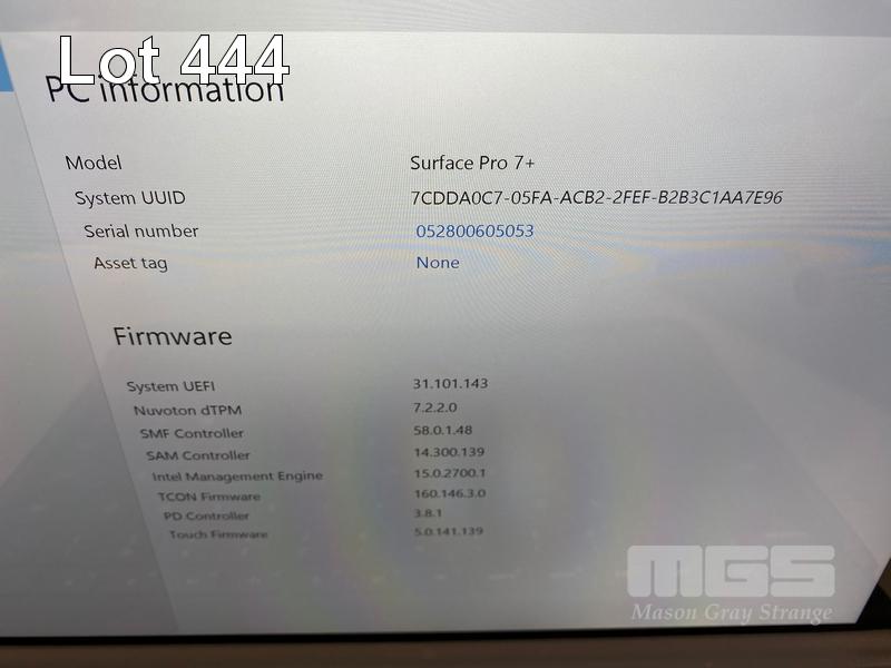 TABLET PC, MICROSOFT SURFACE PRO 7+, MODEL 1961, CORE i5 1135G7 (11TH GEN) @ 2.4GHz, 16GB DDR4 RAM, 256GB NVMe M.2 SSD, 12.3" TOUCHSCREEN (2736x1824), INTEL IRIS Xe GRAPHICS, Wi-Fi, CELLULAR, BLUETOOTH, WINDOWS 11 PRO INSTALLED, KEYBOARD TYPE COVER, CASE & POWER SUPPLY S/N:052800605053