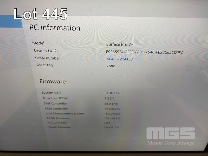 TABLET PC, MICROSOFT SURFACE PRO 7+, MODEL 1961, CORE i5 1135G7 (11TH GEN) @ 2.4GHz, 16GB DDR4 RAM, 256GB NVMe M.2 SSD, 12.3" TOUCHSCREEN (2736x1824), INTEL IRIS Xe GRAPHICS, Wi-Fi, CELLULAR, BLUETOOTH, WINDOWS 11 PRO INSTALLED, KEYBOARD TYPE COVER, CASE & POWER SUPPLY S/N:004087214153