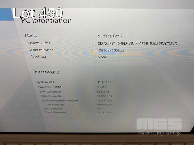TABLET PC, MICROSOFT SURFACE PRO 7+, MODEL 1961, CORE i5 1135G7 (11TH GEN) @ 2.4GHz, 16GB DDR4 RAM, 256GB NVMe M.2 SSD, 12.3" TOUCHSCREEN (2736x1824), INTEL IRIS Xe GRAPHICS, Wi-Fi, CELLULAR, BLUETOOTH, WINDOWS 11 PRO INSTALLED, KEYBOARD TYPE COVER, CASE & POWER SUPPLY S/N:041087105053