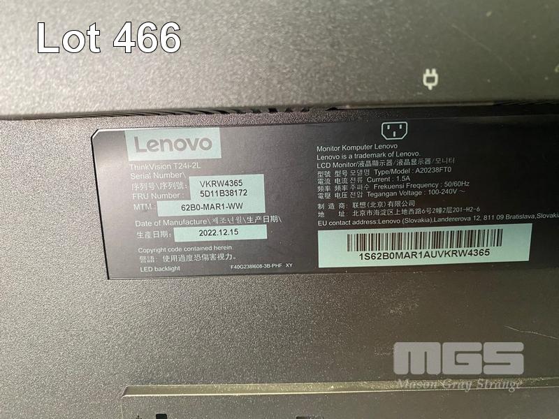 MONITOR, LENOVO THINKVISION T24i-2L 23.8" IPS FHD LED WIDESCREEN, HDMI, DISPLAYPORT, VGA (WITH CABLES) (NO HDMI CABLE) S/N:1S62B0MAR1AUVKRW4365