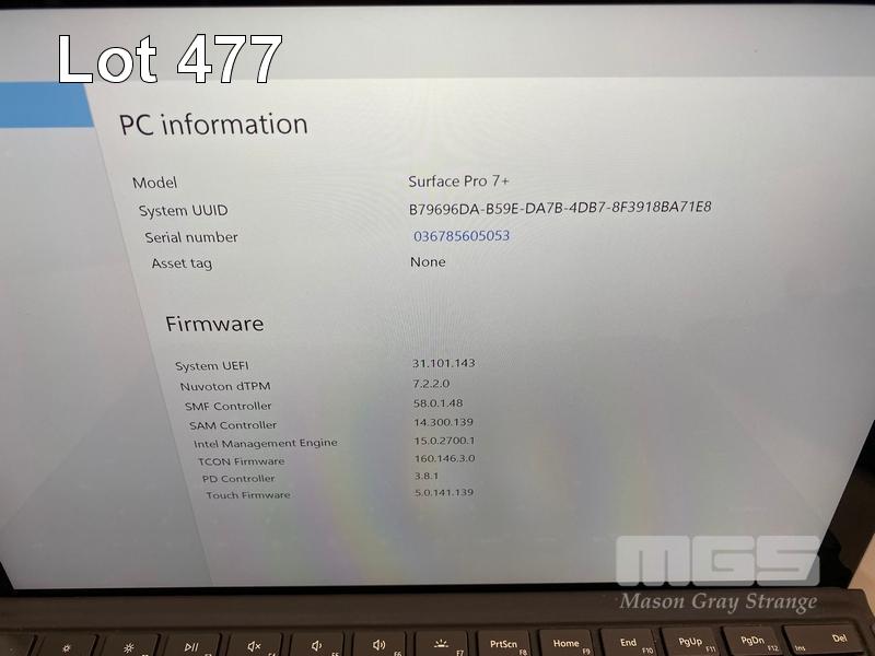 TABLET PC, MICROSOFT SURFACE PRO 7+, MODEL 1961, CORE i5 1135G7 (11TH GEN) @ 2.4GHz, 16GB DDR4 RAM, 256GB NVMe M.2 SSD, 12.3" TOUCHSCREEN (2736x1824), INTEL IRIS Xe GRAPHICS, Wi-Fi, CELLULAR, BLUETOOTH, WINDOWS 11 PRO INSTALLED, KEYBOARD TYPE COVER, CASE & POWER SUPPLY S/N:036785605053