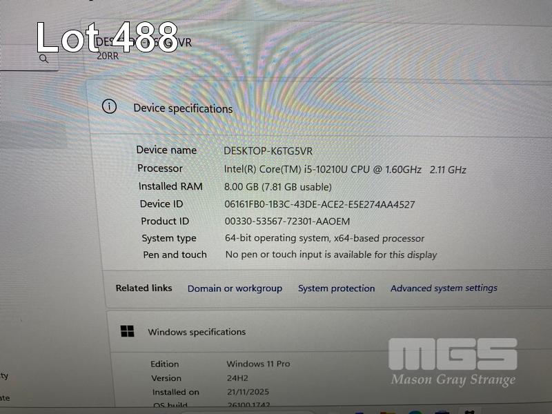 LAPTOP, LENOVO THINKBOOK 13s-IML, TYPE 20RR, CORE i5 10210U (10TH GEN) @ 1.6GHz, 8GB DDR4 RAM, 256GB NVMe M.2 SSD, 13.3" WIDESCREEN (1920x1080), INTEL UHD GRAPHICS, Wi-Fi, BLUETOOTH, WINDOWS 11 PRO INSTALLED & POWER SUPPLY S/N:R912J4XQ