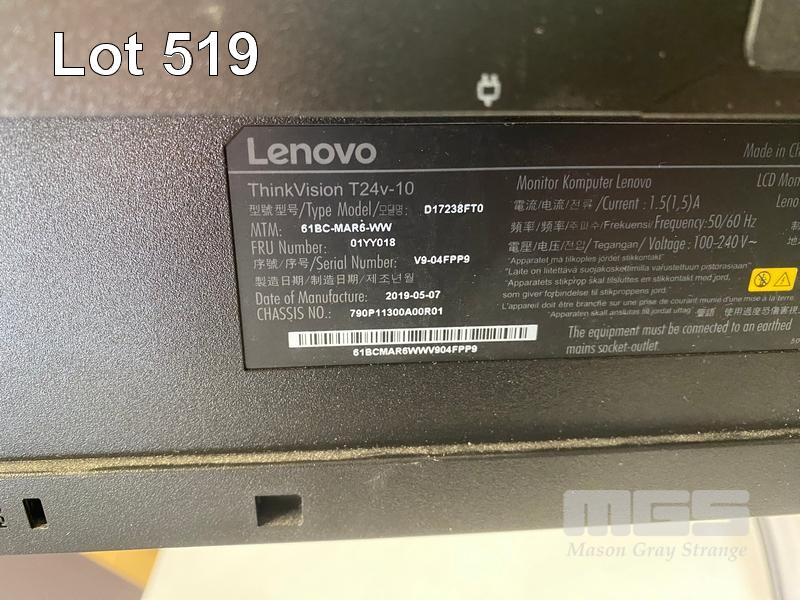 MONITOR, LENOVO THINKVISION T24v-10 23.8" IPS FHD LED WIDESCREEN WITH INBUILT WEBCAM, HDMI, DISPLAYPORT, VGA (WITH CABLES) (NO HDMI CABLE) S/N:61BCMAR6AUV904FPP9