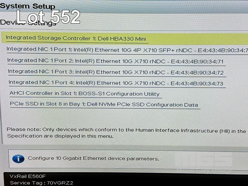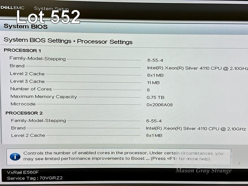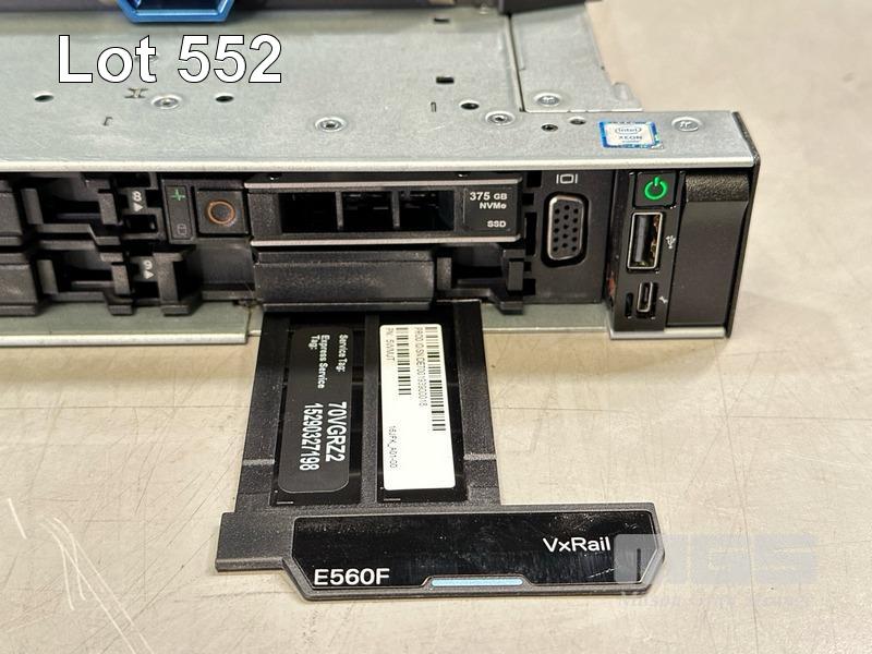 RACKMOUNT SERVER, DELL EMC VxRAIL E560F, 1U, 2 x XEON SILVER 4110 @ 2.1GHz, 192GB ECC DDR4 RAM (12x16GB), 2 x 1.92TB SAS SSD (12Gbps), 1 x 375GB NVMe SSD, BOSS CONTROLLER CARD (03JT49) WITH 2 x 240GB M.2 SSD, 2 x 1100W PSU WITH RAILS (NO CABLES) S/N:70VGRZ2