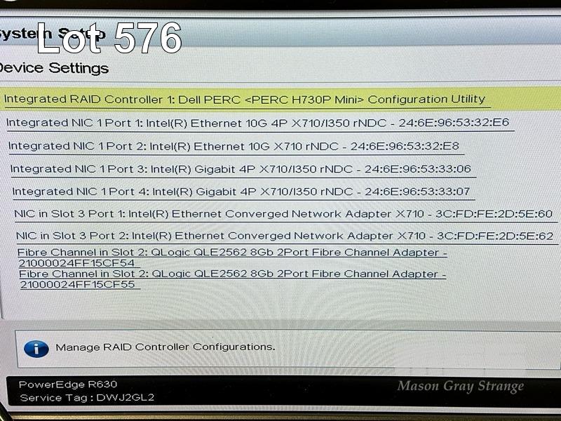 RACKMOUNT SERVER, DELL EMC POWEREDGE R630, 1U, 2 x XEON E5-2687W v4 @ 3GHz, 512GB ECC DDR4 RAM (16x32GB), 6 x 300GB SAS HDD (12Gbps), DVD-RW, 2-PORT QLOGIC QLE2562 8Gb FC ADAPTER, 2-PORT X710 NETWORK ADAPTER, 2 x 1100W PSU WITH RAILS (NO CABLES) S/N:DWJ2GL2