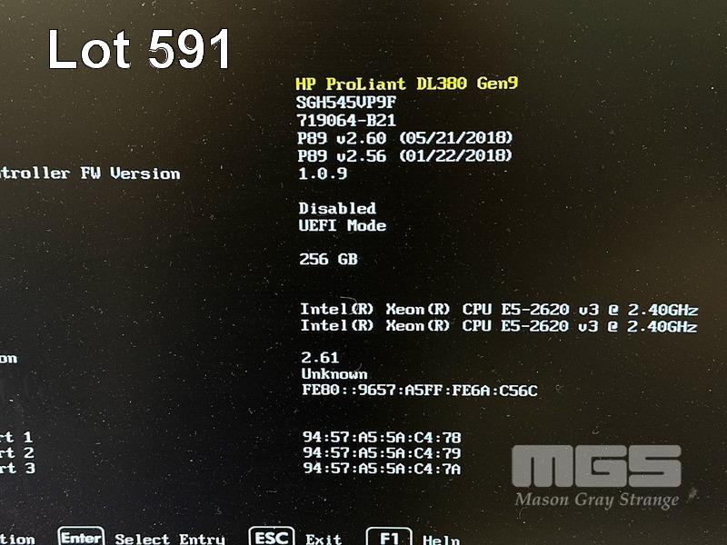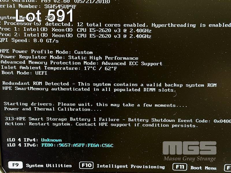 RACKMOUNT SERVER, HP PROLIANT DL380 Gen9, 2U, 2 x XEON E5-2620 v3 @ 2.4GHz, 256GB ECC DDR4 RAM (16x16GB), 2 x 146GB SAS HDD, 2-PORT 561FLR-T 10Gb ADAPTER, 2-PORT 560SFP+ 10Gb ADAPTER, 2-PORT STORE FABRIC 8Gb FC, 2 x 500W PSU WITH RAILS (NO CABLES) (NOTE: MESSAGE "SMART STORAGE BATTERY 1 FAILURE") S/N:SGH545VP9F