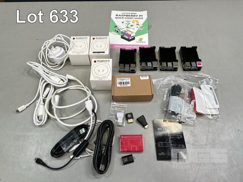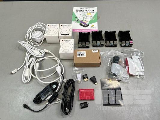 4 x RASPBERRY Pi 4 MODEL B BOX & COMPUTE MODULE, LED SCREEN, POWER & ACCESSORIES