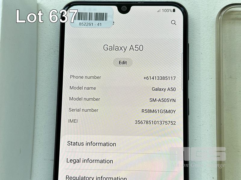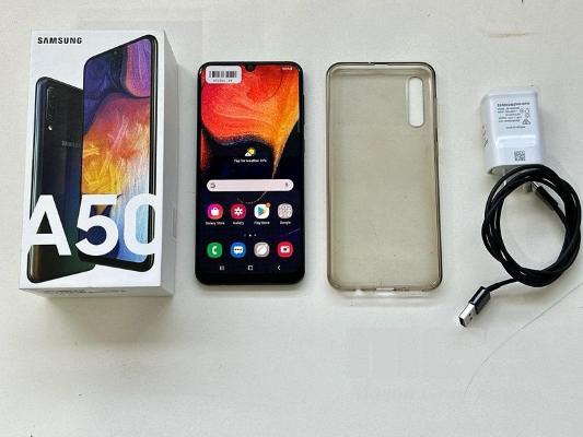 SAMSUNG GALAXY A50 SMARTPHONE, MODEL SM-A505YN, 64GB, WITH COVER, USB-C CABLE & CHARGER S/N:R58M61G5M0Y