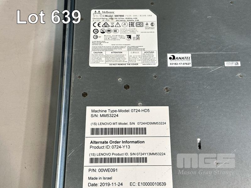 MELLANOX SB7890 100Gb/s INFINIBAND QSFP28 36-PORT SWITCH, 0724-HD5, 2 x PSU WITH RAILS S/N:MM53224