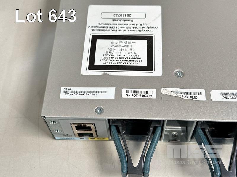 CISCO CATALYST 3850 48 PoE+ 48-PORT SWITCH, WS-C3850-48P-S V02 C3850-NM-2-10G NETWORK MODULE, 1 x PWR-C1-715WAC PSU WITH CABLE S/N:FOC1730Z03Y