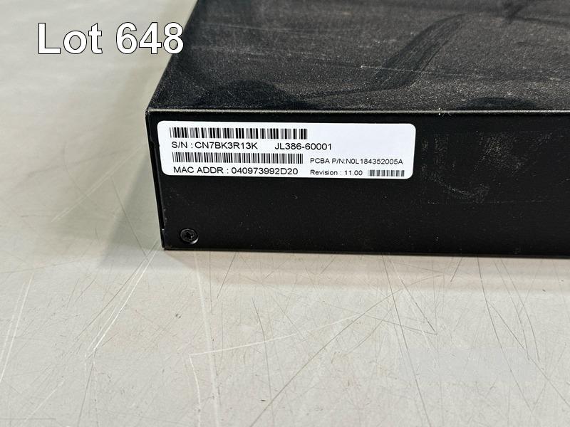 HPE OFFICECONNECT 1920S SERIES 48G 4SFP PPoE+ 370W NETWORK SWITCH, JL386A WITH NOTCH POWER CABLE S/N:CN7BK3R13K