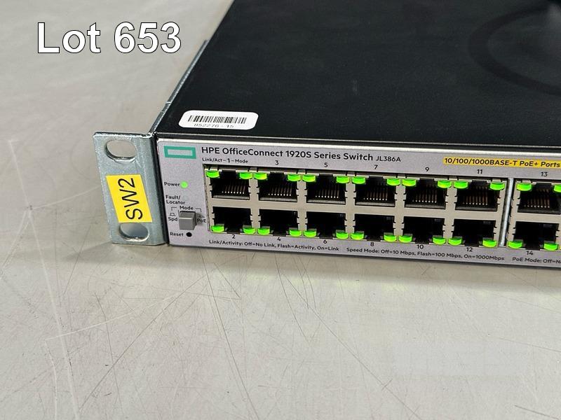 HPE OFFICECONNECT 1920S SERIES 48G 4SFP PPoE+ 370W NETWORK SWITCH, JL386A WITH NOTCH POWER CABLE S/N:CN81K3R1BF