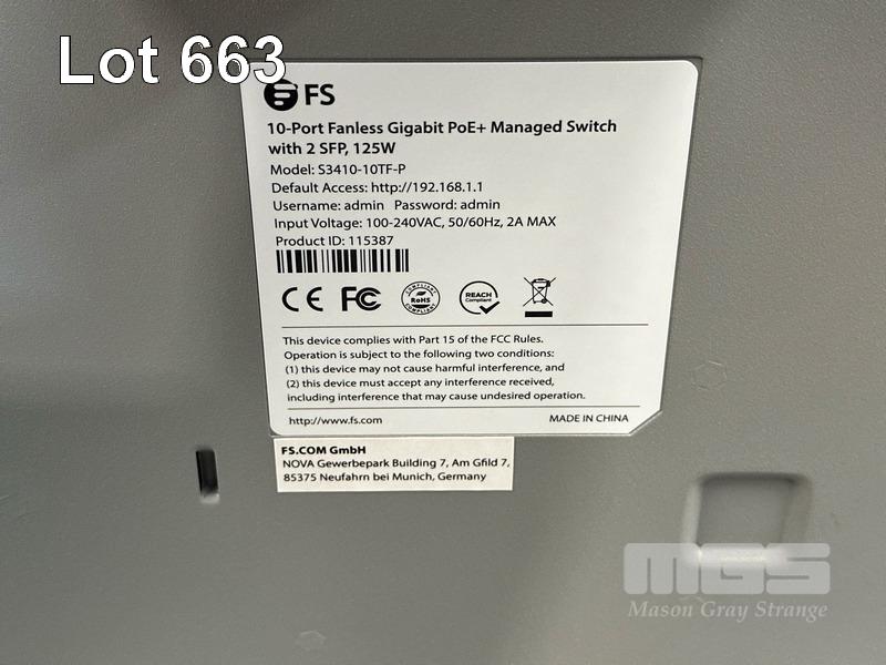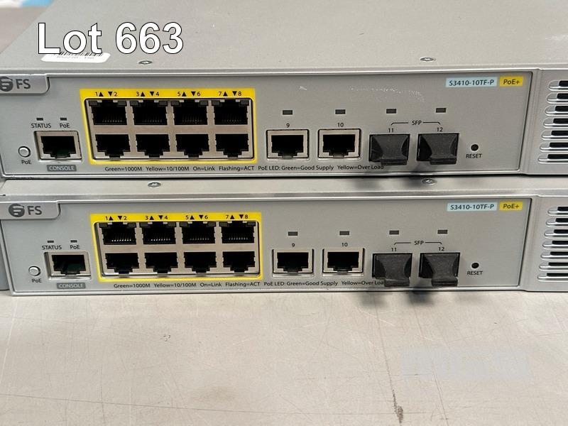 2 x FS S3410-10TF-P 10-PORT FANLESS GIGABIT PoE+ MANAGED SWITCHES S/N:G1QH1HH000376, G1QH1HH00069B