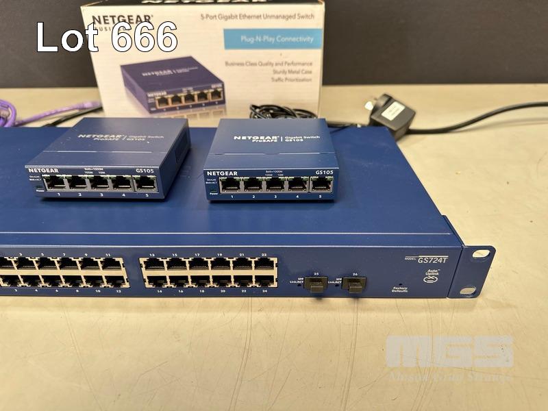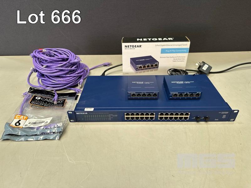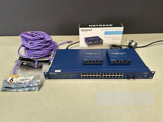 NETGEAR PROSAFE GS724T 24-PORT SMART SWITCH, 2 x NETGEAR PROSAFE GS105 5-PORT GIGABIT SWITCHES, WITH CAT6 CABLES