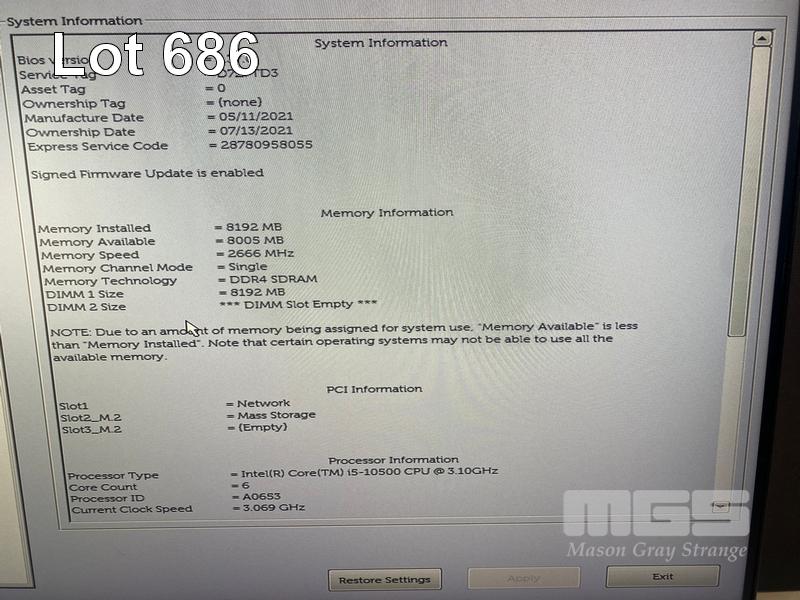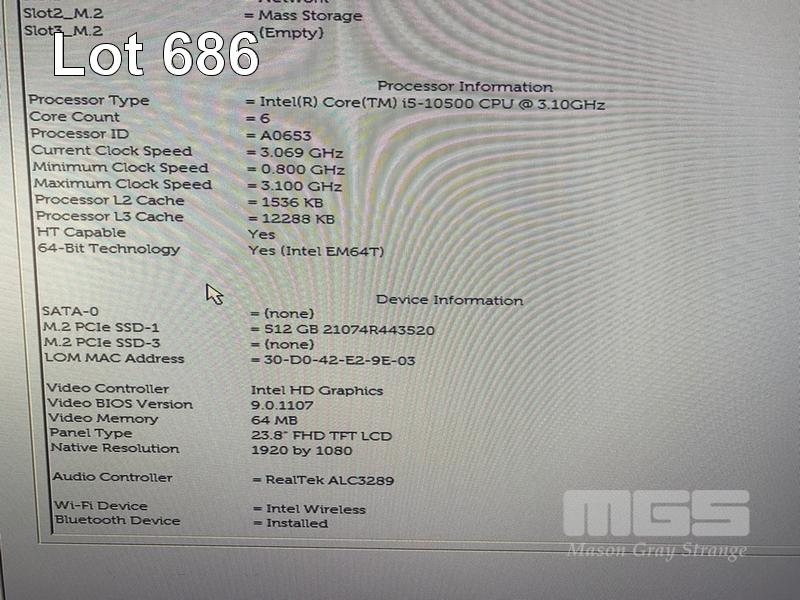 ALL-IN-ONE PC, DELL OPTIPLEX 7480, CORE i5 10500 (10TH GEN) @ 3.1GHz, 8GB DDR4 RAM, 512GB NVMe M.2 SSD, INBUILT 23.8" FHD WIDESCREEN (1920x1080), INTEL HD VIDEO, WEBCAM, 5 x USB, 1 x USB-C, Wi-Fi, BLUETOOTH, WINDOWS 11 HOME INSTALLED, KEYBOARD & MOUSE (NOTE: SCRATCH ON SCREEN) S/N:D7ZFTD3