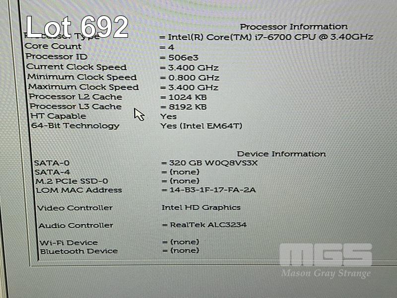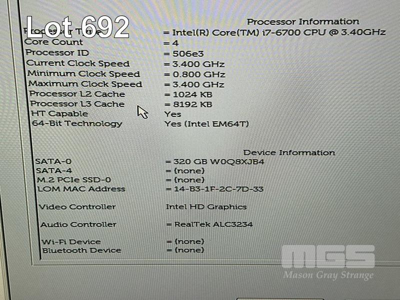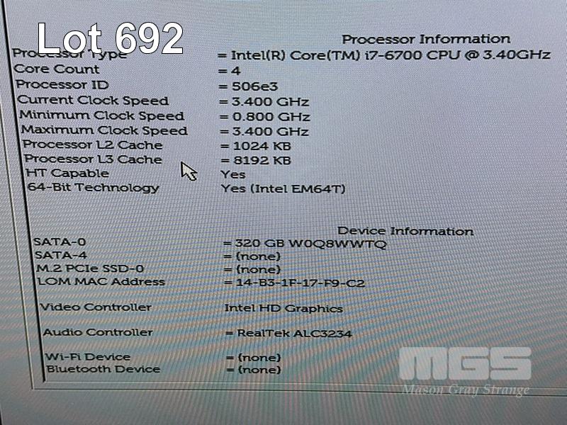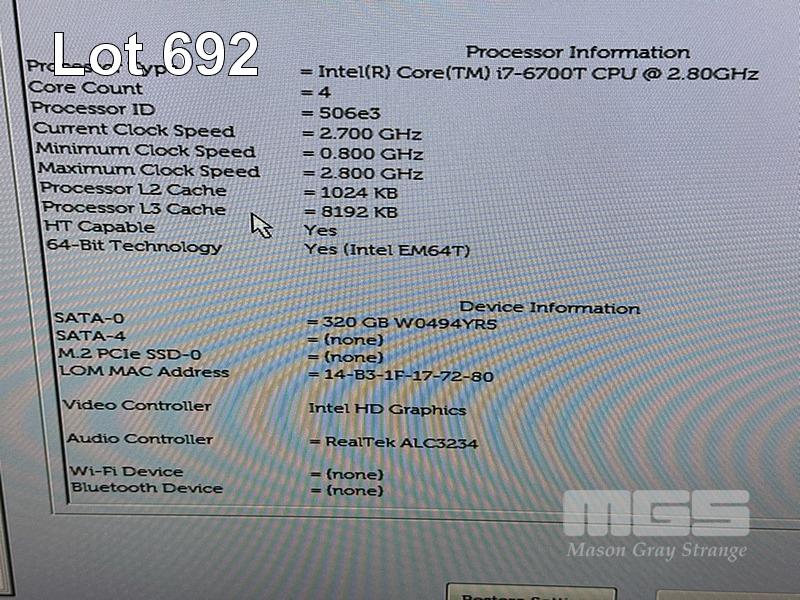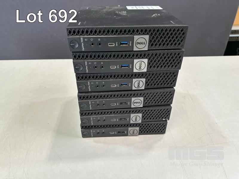 6 x DESKTOP PCS INC. - 5 x DELL OPTIPLEX 7050 MICRO, CORE i7 6700 (6TH GEN) @ 3.4GHz, 8GB DDR4 RAM, 320GB SATA HDD, WINDOWS 10 HOME INSTALLED - 1 x DELL OPTIPLEX 7050 MICRO, CORE i7 6700T (6TH GEN) @ 2.8GHz, 8GB DDR4 RAM, 320GB SATA HDD, WINDOWS 10 HOME INSTALLED (NOTE: 1 x WITH DAMAGE / FAULTY USB PORT) (NO POWER SUPPLIES) S/N:9NCR9M2, 9JTBMP2, 6750DK2, CKL1DK2, HG6VCK2, 63D0DK2