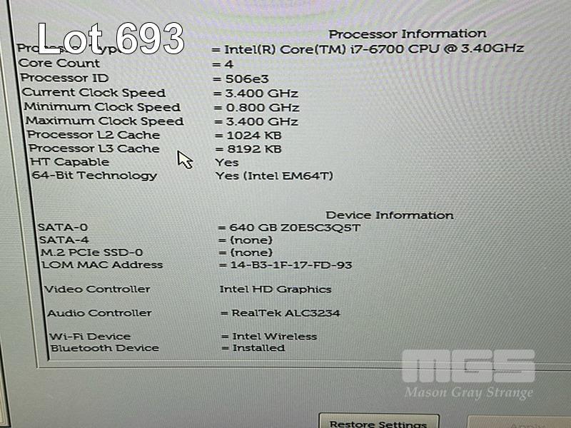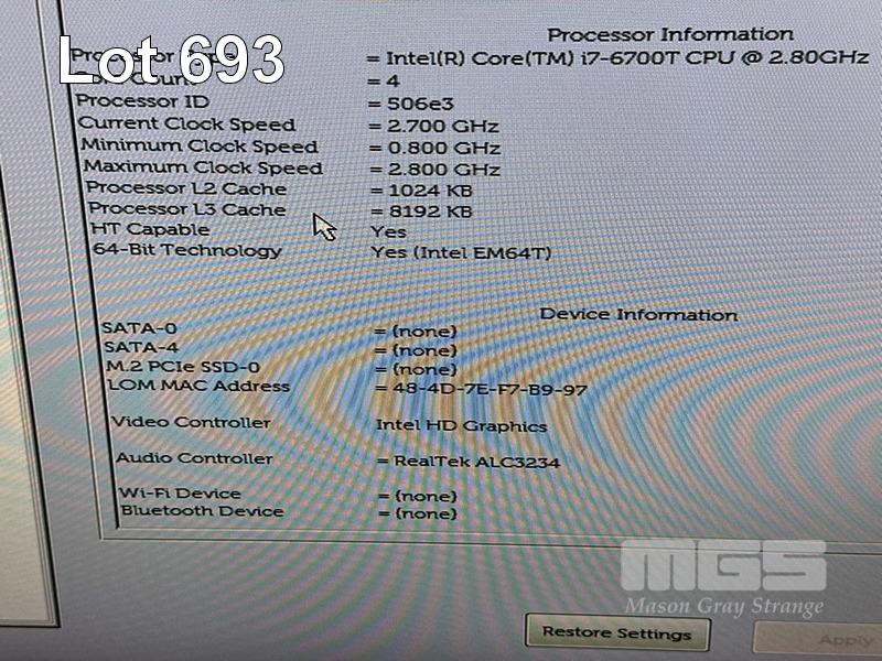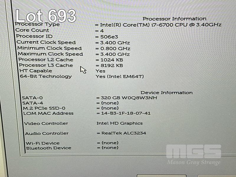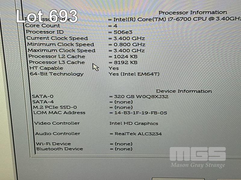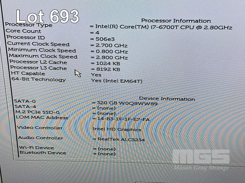 7 x DESKTOP PCS INC. - 2 x DELL OPTIPLEX 7050 MICRO, CORE i7 6700 (6TH GEN) @ 3.4GHz, 8GB DDR4 RAM, 320GB SATA HDD, WINDOWS 10 HOME INSTALLED - 1 x DELL OPTIPLEX 7050 MICRO, CORE i7 6700T (6TH GEN) @ 2.8GHz, 8GB DDR4 RAM, 320GB SATA HDD, WINDOWS 10 HOME INSTALLED - 1 x DELL OPTIPLEX 7050 MICRO, CORE i7 6700T (6TH GEN) @ 2.8GHz, 8GB DDR4 RAM, 750GB SATA HDD, WINDOWS 10 HOME INSTALLED - 1 x DELL OPTIPLEX 7050 MICRO, CORE i7 6700 (6TH GEN) @ 3.4GHz, 8GB DDR4 RAM, 640GB SATA HDD, WINDOWS 10 HOME INSTALLED - 2 x DELL OPTIPLEX 7040 MICRO, CORE i7 6700T (6TH GEN) @ 2.8GHz, 8GB DDR4 RAM, NO HDD (NO POWER SUPPLIES) S/N:7J0QRK2, 83XRZL2, CHJWCK2, 5BKL7N2, CFQTCK2, HGQCHJ2, HFVBHJ2