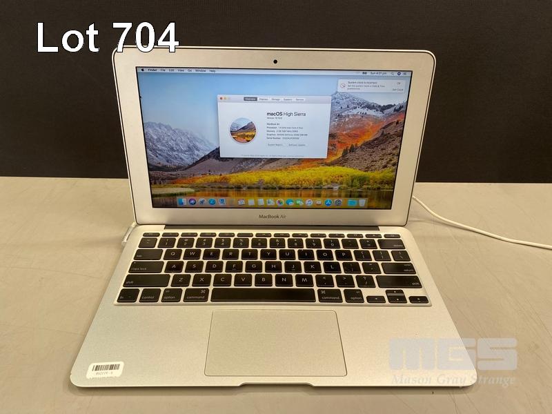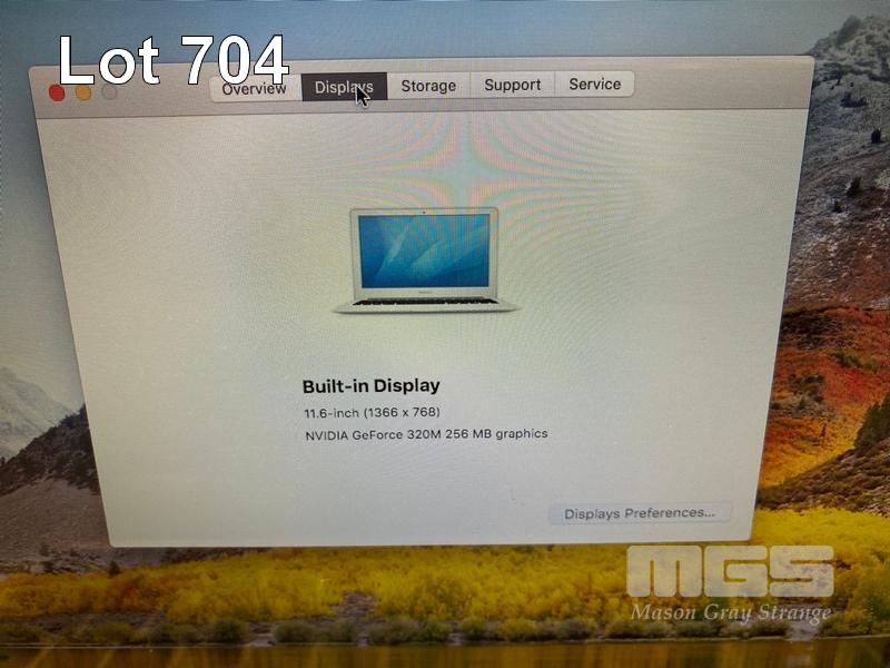 LAPTOP, APPLE MACBOOK AIR (A1370), CORE 2 DUO SU9400 @ 1.4GHz, 2GB DDR3 RAM, 64GB SSD, 11.6" WIDESCREEN (1366x768), INTEL HD GRAPHICS 3000, Wi-Fi, BLUETOOTH, MAC OS 10.13 INSTALLED & POWER SUPPLY (NOTE: BATTERY NOT CHARGING) S/N:C02DRJX3DDQX