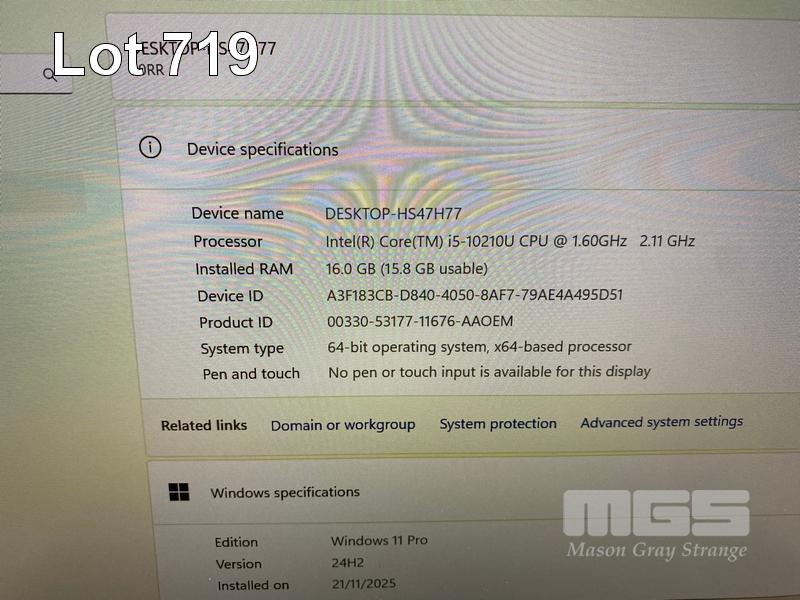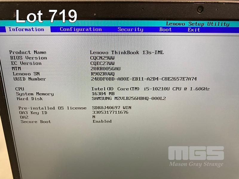LAPTOP, LENOVO THINKBOOK 13s-IML, TYPE 20RR, CORE i5 10210U (10TH GEN) @ 1.6GHz, 16GB DDR4 RAM, 256GB NVMe M.2 SSD, 13.3" WIDESCREEN (1920x1080), INTEL UHD GRAPHICS, Wi-Fi, BLUETOOTH, WINDOWS 11 PRO INSTALLED & POWER SUPPLY (NOTE: TOUCHPAD FAULTY) S/N:R90ZRVWQ