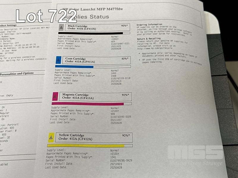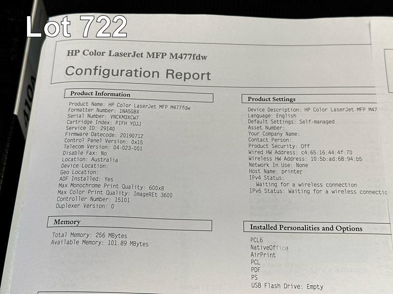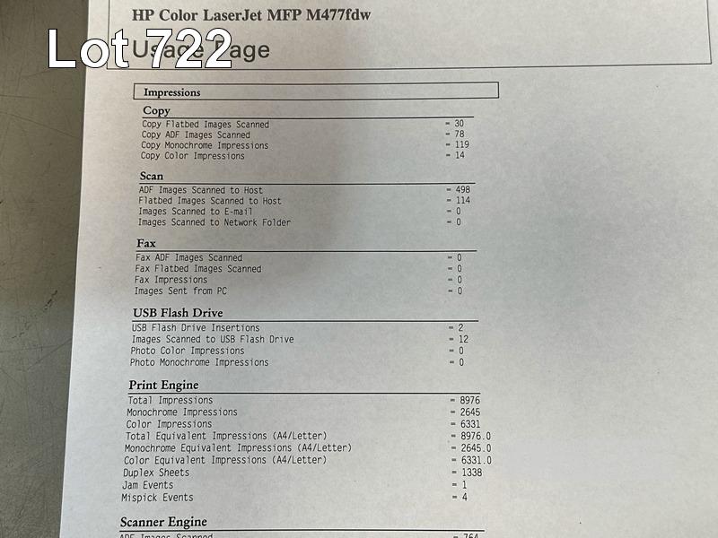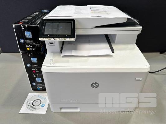 PRINTER, HP COLOUR LASERJET PRO MFP M477fdw, ADF, USB, NETWORK, 6,331 COLOUR & 2,645 B&W PAGES (TEST PAGE ATTACHED) WITH SPARE TONER CARTRIDGES S/N:VNCKM3XCW7