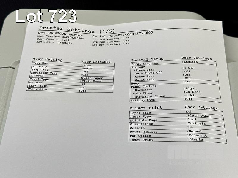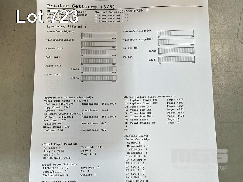 PRINTER, BROTHER MFC-L8690CDW MFC COLOUR LASER, ADF, USB, NETWORK, 5,549 COLOUR & 2,655 B&W PAGES (TEST PAGE ATTACHED) S/N:E77460H1F728600