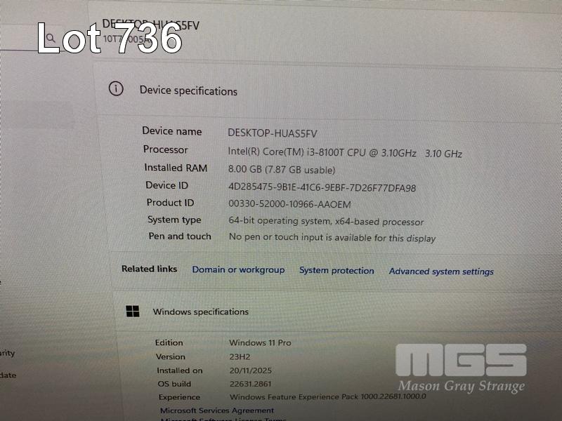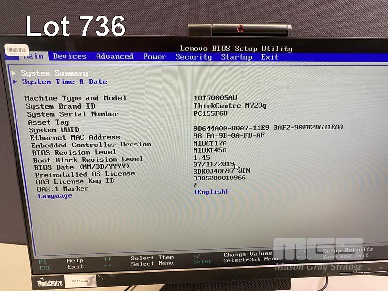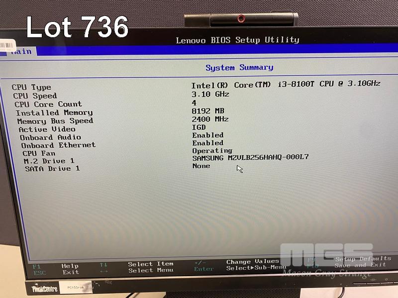 TINY-IN-ONE PC, LENOVO THINKCENTRE M720q, TYPE 10T7, CORE i3 8100T (8TH GEN) @ 3.1GHz, 8GB DDR4 RAM, 256GB NVMe M.2 SSD, LENOVO TIO24Gen3 23.8" LED-BL LCD WIDESCREEN, WEBCAM, Wi-Fi, BLUETOOTH, WINDOWS 11 PRO INSTALLED, KEYBOARD, MOUSE & POWER SUPPLY S/N:PC155FG8