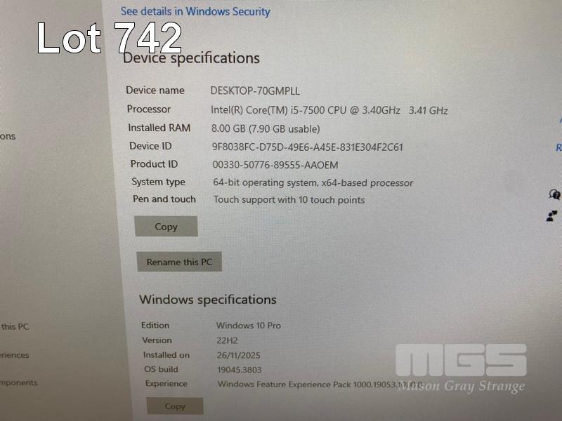 ALL-IN-ONE PC, LENOVO THINKCENTRE M910z, CORE i5 7500 (7TH GEN) @ 3.4GHz, 8GB DDR4 RAM, 128GB NVMe M.2 SSD, DVD-RW, INBUILT 23.8" TOUCHSCREEN (1920x1080), Wi-Fi, WINDOWS 10 PRO INSTALLED (NO KEYBOARD, NO MOUSE) S/N:PC0RB39X