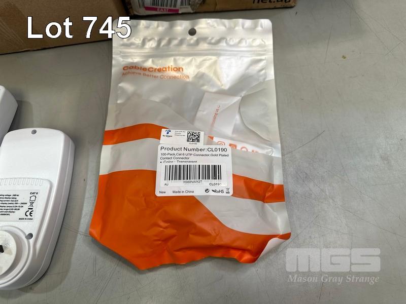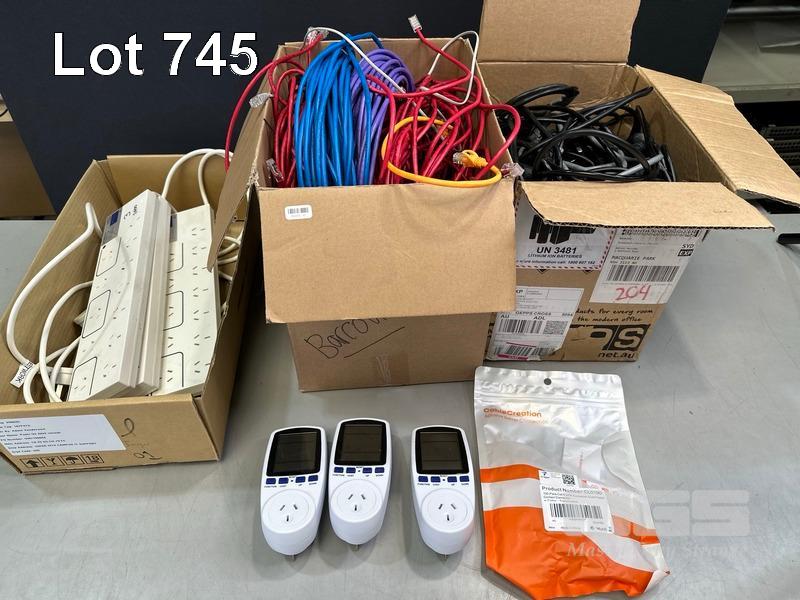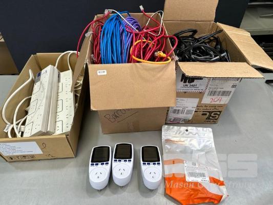 1 x BOX OF ASST CAT5e NETWORK CABLES, 1 x BOX APPROX 50 x IEC POWER CABLES 100-PACK CAT 6 UTP CONNECTOR, GOLD PLATED, TRANSPARENT 3 x POWER BOARDS, 3 x WATT METERS