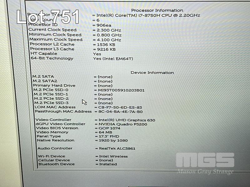 LAPTOP, DELL PRECISION 7730, CORE i7 8750H (8TH GEN) @ 2.2GHz, 64GB DDR4 RAM, 512GB NVMe M.2 SSD, 17.3" WIDESCREEN (1920x1080), 6GB NVIDIA QUADRO P3200 VIDEO, INTEL UHD GRAPHICS 630, Wi-Fi, BLUETOOTH, WINDOWS 11 PRO INSTALLED, POWER SUPPLY & CARRY BAG S/N:1G86PV2