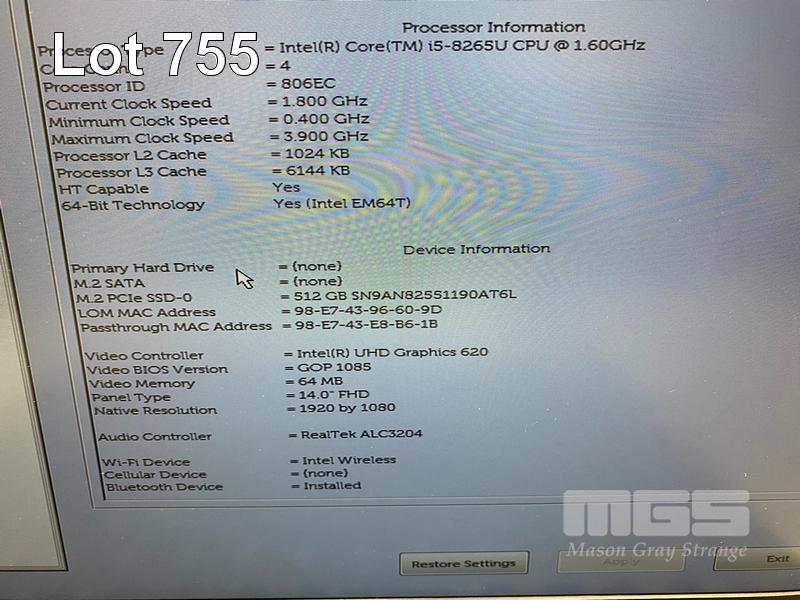 LAPTOP, DELL LATITUDE 5400, CORE i5 8265U (8TH GEN) @ 1.6GHz, 8GB DDR4 RAM, 512GB NVMe M.2 SSD, 14" WIDESCREEN (1920x1080), INTEL UHD GRAPHICS 620, Wi-Fi, BLUETOOTH, WINDOWS 11 HOME INSTALLED & POWER SUPPLY S/N:4Q9K9Y2
