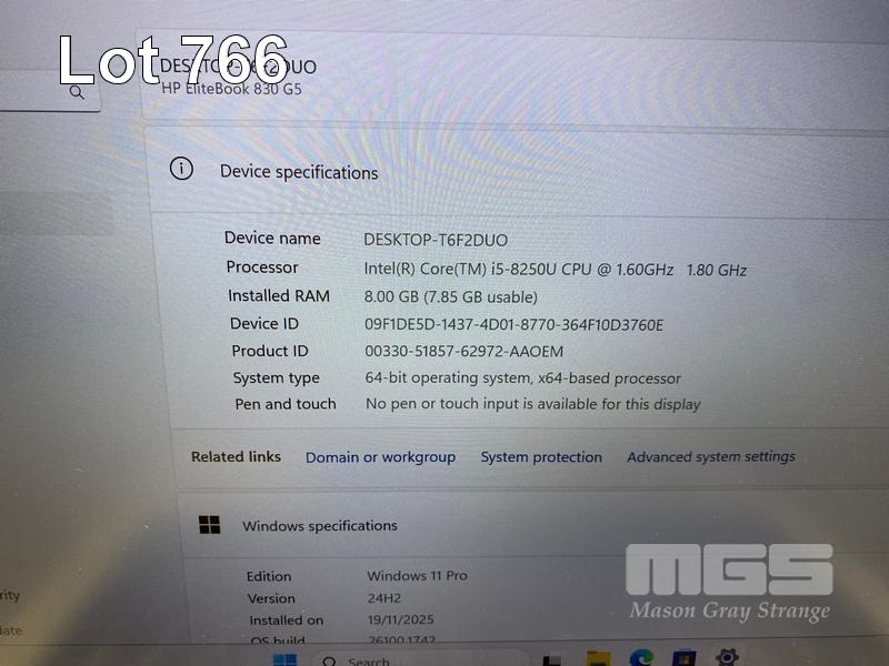 LAPTOP, HP ELITEBOOK 830 G5, CORE i5 8250U (8TH GEN) @ 1.6GHz, 8GB DDR4 RAM, 256GB NVMe M.2 SSD, 13.3" WIDESCREEN (1920x1080), INTEL UHD GRAPHICS 620, Wi-Fi, BLUETOOTH, WINDOWS 11 PRO INSTALLED (NO POWER SUPPLY) (NOTE: MINOR DAMAGE TO CASING) S/N:5CG9124V63