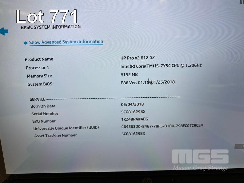TABLET PC, HP PRO x2 612 G2, CORE i5 7Y54 (7TH GEN) @ 1.2GHz, 8GB RAM, 256GB NVMe M.2 SSD, 12.5" TOUCHSCREEN (1920x1080), Wi-Fi, CELLULAR, BLUETOOTH, WINDOWS 10 PRO INSTALLED (NO USB-C POWER SUPPLY) S/N:5CG81629BX