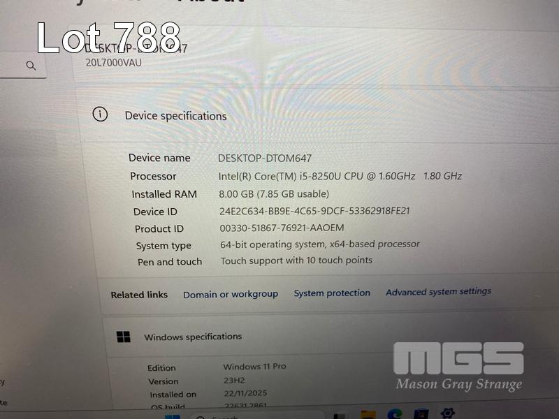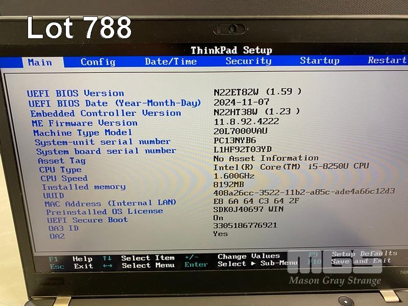LAPTOP, LENOVO THINKPAD T480s, TYPE 20L7, CORE i5 8250U (8TH GEN) @ 1.6GHz, 8GB DDR4 RAM, 250GB NVMe M.2 SSD, 14" TOUCHSCREEN (1920x1080), INTEL HD VIDEO, Wi-Fi, BLUETOOTH, WINDOWS 11 PRO INSTALLED (NO USB-C POWER SUPPLY) (NOTE: MARKS ON SCREEN) S/N:PC13NYB6