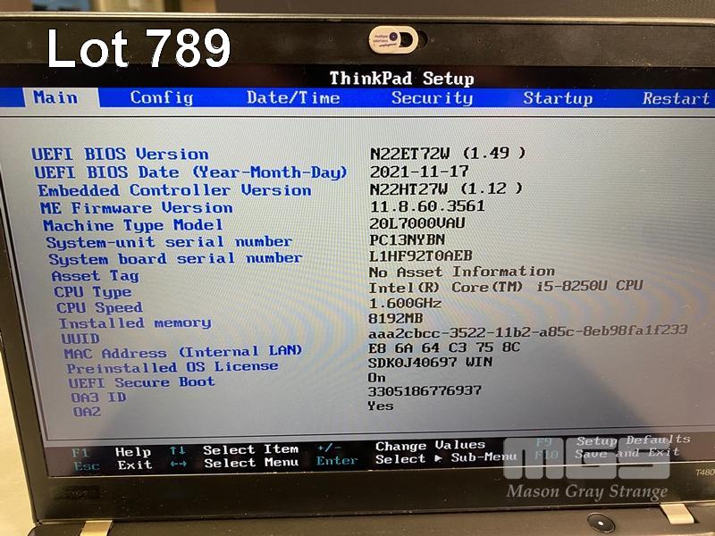 LAPTOP, LENOVO THINKPAD T480s, TYPE 20L7, CORE i5 8250U (8TH GEN) @ 1.6GHz, 8GB DDR4 RAM, 256GB NVMe M.2 SSD, 14" TOUCHSCREEN (1920x1080), INTEL HD VIDEO, Wi-Fi, BLUETOOTH, WINDOWS 11 PRO INSTALLED (NO USB-C POWER SUPPLY) (NOTE: MARKS ON SCREEN, STICKERS ON CASING) S/N:PC13NYBN