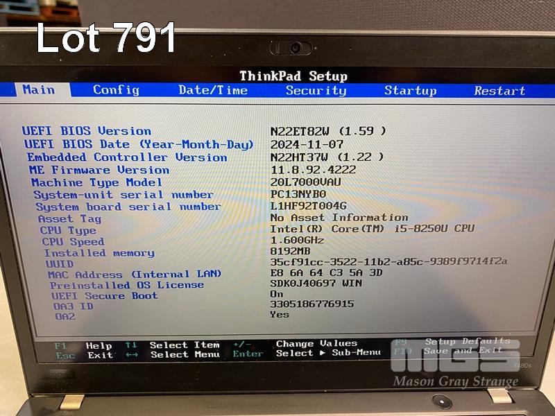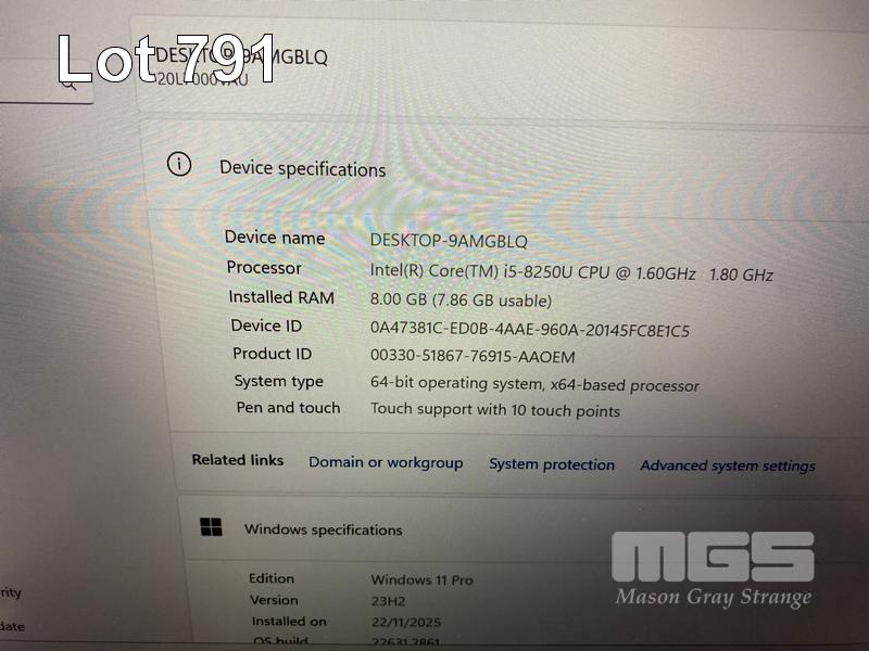 LAPTOP, LENOVO THINKPAD T480s, TYPE 20L7, CORE i5 8250U (8TH GEN) @ 1.6GHz, 8GB DDR4 RAM, 256GB NVMe M.2 SSD, 14" TOUCHSCREEN (1920x1080), INTEL HD VIDEO, Wi-Fi, BLUETOOTH, WINDOWS 11 PRO INSTALLED (NO USB-C POWER SUPPLY) (NOTE: FAULTY USB-C PORT) S/N:PC13NYB0