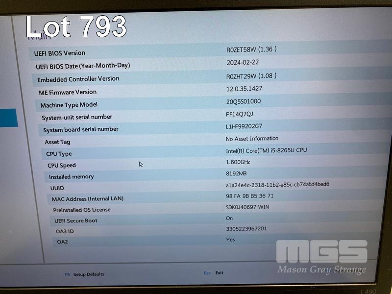 LAPTOP, LENOVO THINKPAD L490, TYPE 20Q5, CORE i5 8265U (8TH GEN) @ 1.6GHz, 8GB DDR4 RAM, 256GB NVMe M.2 SSD, 14" WIDESCREEN (1920x1080), INTEL UHD GRAPHICS, Wi-Fi, BLUETOOTH, WINDOWS 11 PRO INSTALLED (NO USB-C POWER SUPPLY) S/N:PF14Q7QJ