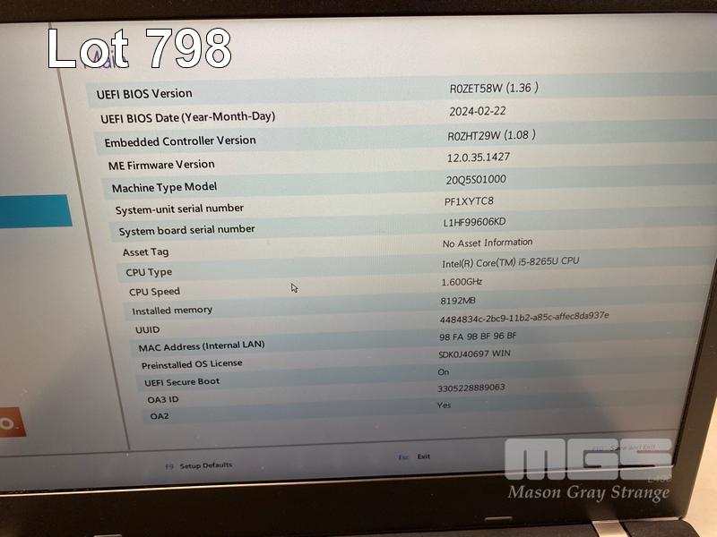 LAPTOP, LENOVO THINKPAD L490, TYPE 20Q5, CORE i5 8365U (8TH GEN) @ 1.6GHz, 8GB DDR4 RAM, 256GB NVMe M.2 SSD, 14" WIDESCREEN (1920x1080), INTEL UHD GRAPHICS, Wi-Fi, BLUETOOTH, WINDOWS 11 PRO INSTALLED (NO USB-C POWER SUPPLY) (NOTE: MARKS ON SCREEN) S/N:PF1XYTC8