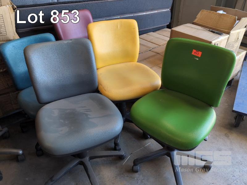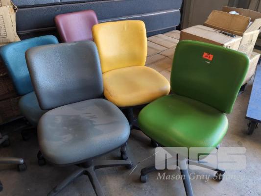 5 X VINYL GAS LIFT OFFICE CHAIRS, VARIOUS COLOURS