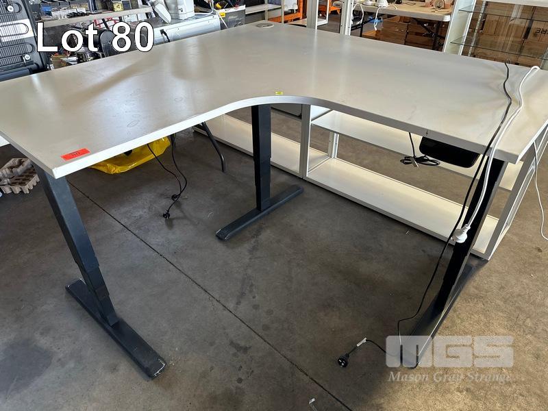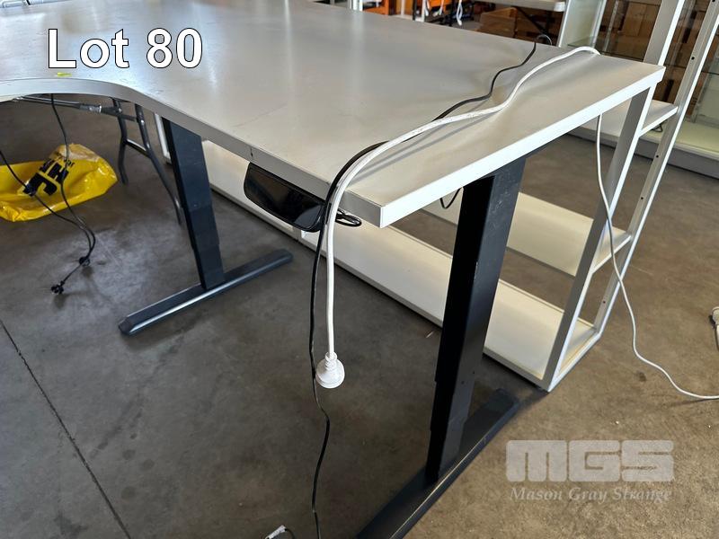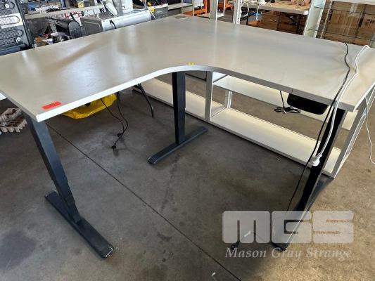 CORNER ELECTRIC HEIGHT ADJUSTABLE OFFICE DESK, WHITE LAMINATE TOP, BLACK STEEL FRAME, 150 x 150 x 75cm
