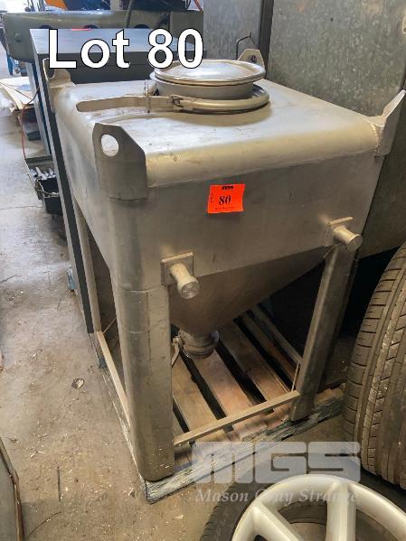 SMALL STAINLESS STEEL HOPPER WITH LIFTING POINTS, 600 x 600 x 900mm SEALED TOP