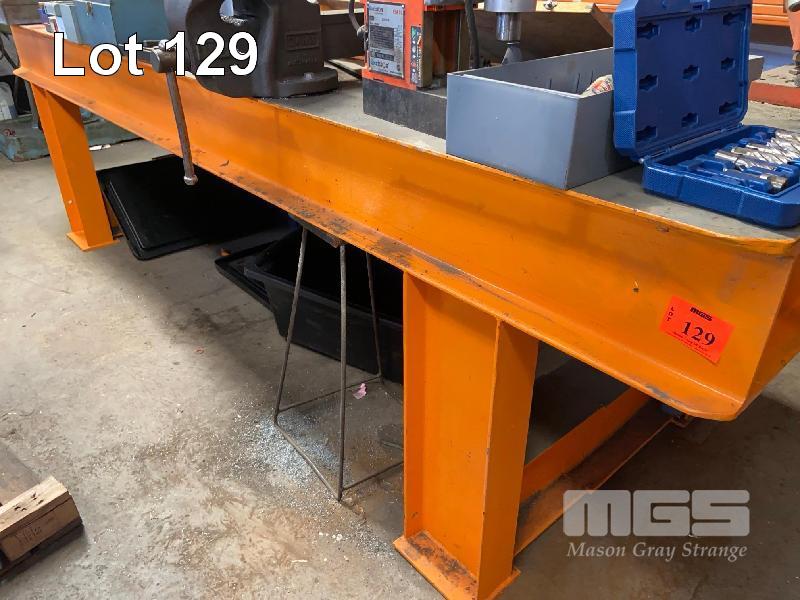 VERY HEAVY DUTY WELDERS BENCH, 3000 x 950mm, 6mm TOP WITH 150mm DAWN VICE