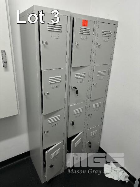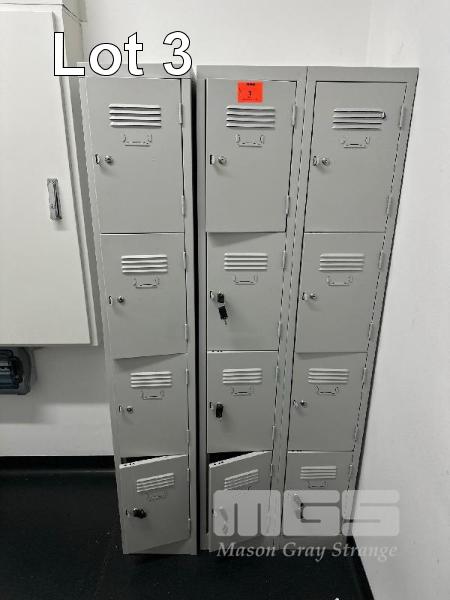 3 x STEEL LOCKER SETS, 4 DOOR, 1800 x 300 x 450mm WITH SOME KEYS & 2 TIER SHOE RACK
